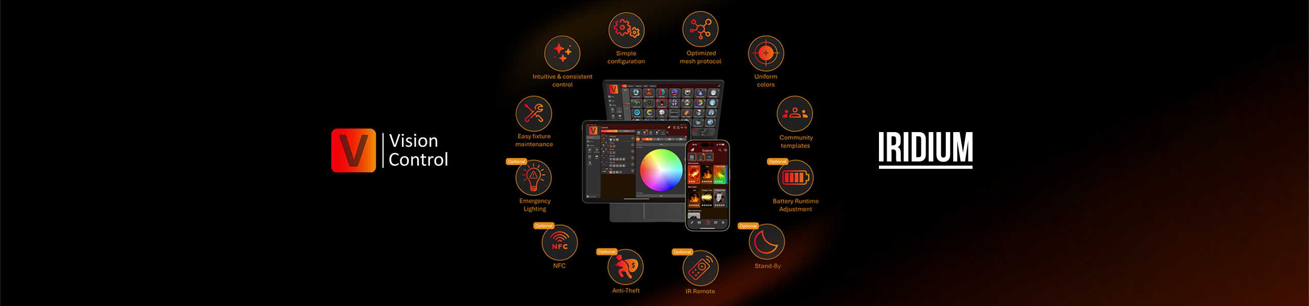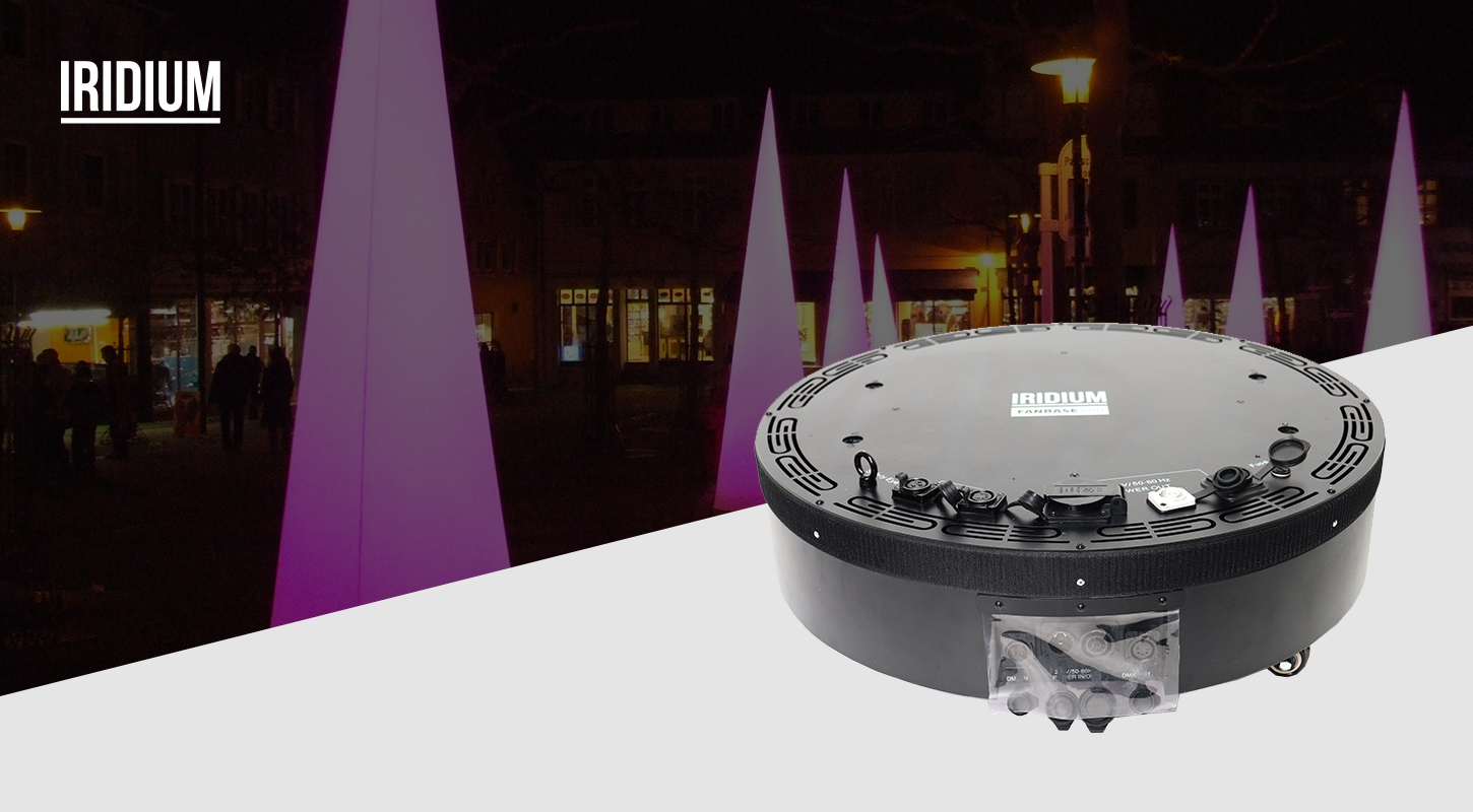 The IRIDIUM FanBase 600 is a durable 60 cm base for moving heads and fixtures, equipped with power and DMX outputs as well as flexible M12 mounting points for truss installation. Optional rain covers and an integrated safety fan with auto-off ensure top reliability for both indoor and outdoor setups. With high-grade IP65 connectors and the included 3.5 m air cone, it is a versatile, professional solution for impactful Lighting installations.